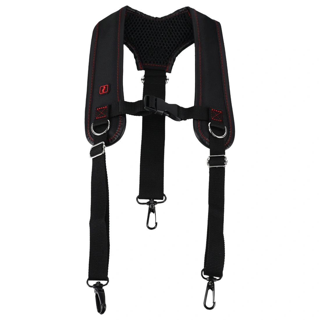 Konstrukcja obejmuje nylonowe wyściełanie oraz nakropienie PVC po wewnętrznej stronie panelu na plecy, co poprawia stabilność i zapobiega przesuwaniu się szelek podczas wykonywania dynamicznych czynności. System regulacji umożliwia dokładne dopasowanie: długość taśmy tylnej regulowana w zakresie około 26–50 cm oraz taśm przednich w zakresie około 24–46 cm. Dzięki temu szelki można łatwo dostosować do różnych typów sylwetek oraz indywidualnych preferencji użytkownika.